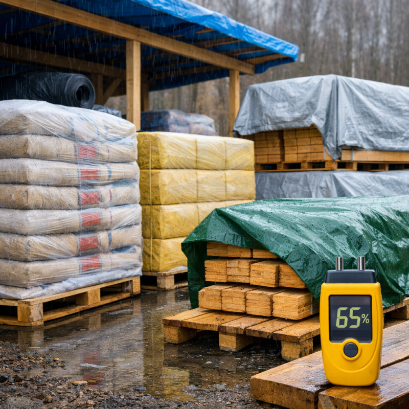 Одна из самых распространённых ошибок — хранение материалов непосредственно на земле. Даже плотная плёнка не спасает от проникновения влаги снизу.