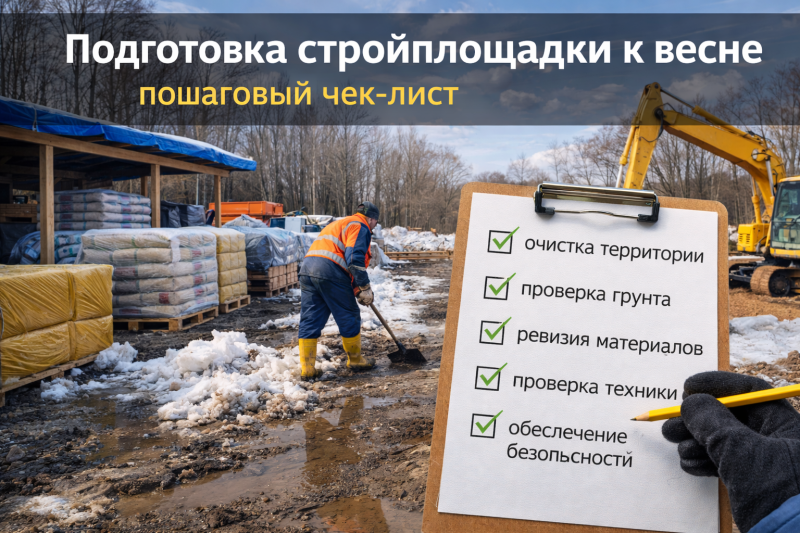 Материал будет полезен как частным застройщикам, так и подрядным организациям, запускающим объекты после зимней паузы. Подготовка стройплощадки к весне включает очистку территории, проверку состояния грунта и дренажа, ревизию материалов и техники, а также организацию безопасных условий работы. Работы рекомендуется начинать после схода снега и стабилизации температуры выше 0°C.