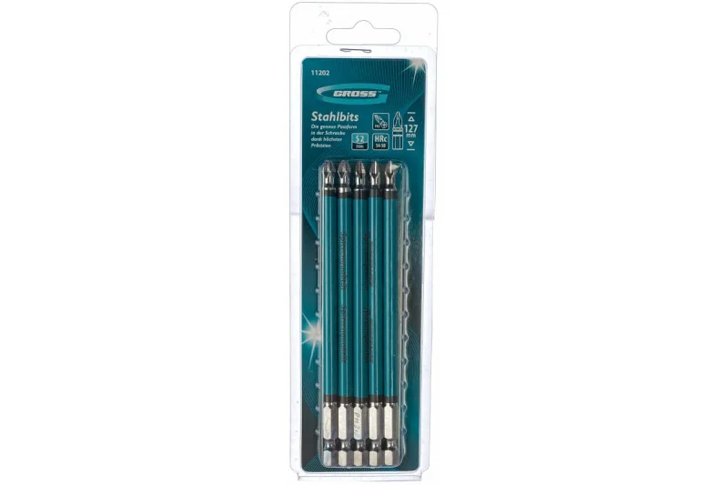 Набор бит GROSS 11202 предназначен для монтажа/демонтажа крепежных изделий, имеющих шлиц PH2, с помощью шуруповерта в труднодоступных местах. Биты изготовлены из высококачественной инструментальной стали S2 твердостью 54-58 HRС.
