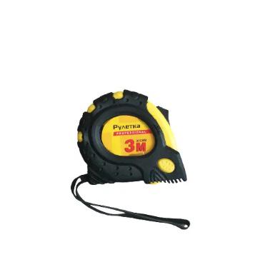 Рулетка имеет обрезиненный корпус, металлическая лента используется при проведении измерительных работ. Корпус с противоскользящим покрытием, изготовлен из ударопрочного пластика и оснащен металлическим поясным зажимом.