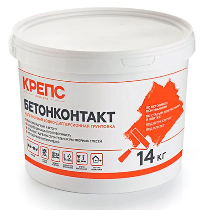 КРЕПС "Бетоноконтакт" – водная дисперсия акрилового сополимера, комплекс наполнителей, вспомогательные добавки, модификаторы.