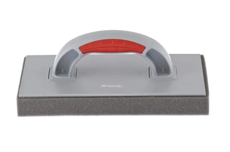 Пластмассовая терка Matrix 86805 размером 270 х 130 мм, с губчатым покрытием высотой 30 мм и двухкомпонентной рукояткой, используется на финишных этапах отделочных работ. Подходит для очищения плитки после нанесения затирки. Инструмент не царапает обрабатываемую поверхность, обеспечивая высокое качество отделки.