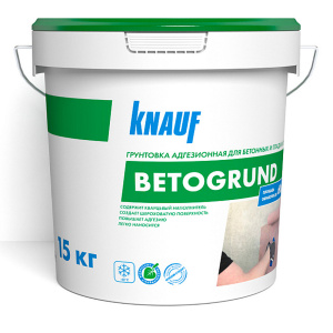 Грунтовка Бетогрунд от KNAUF используется для обработки плотных, гладких и слабо впитывающих влагу оснований, таких как бетон, цементная штукатурка, пенополистирол, пазогребневые и цементные плиты. Она повышает адгезию поверхности для последующего нанесения гипсовых штукатурок, шпаклёвок и монтажного клея, а также создает шероховатую поверхность для идеального сцепления. Грунтовка отличается низким расходом, легкостью нанесения, низкой осаждаемостью кварцевого наполнителя, щелочестойкостью и повышенной адгезией.