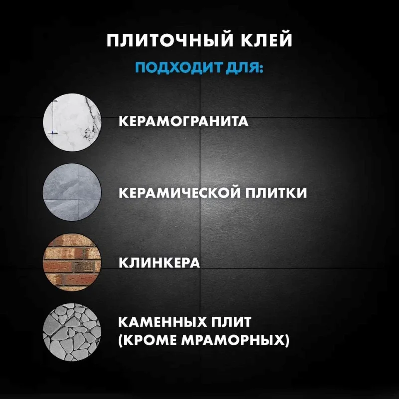 Клей СМ 17 предназначен для крепления всех видов минеральных плиток – керамических, керамогранитных, клинкерных, каменных (кроме мраморных) и т.п., на стенах и полах