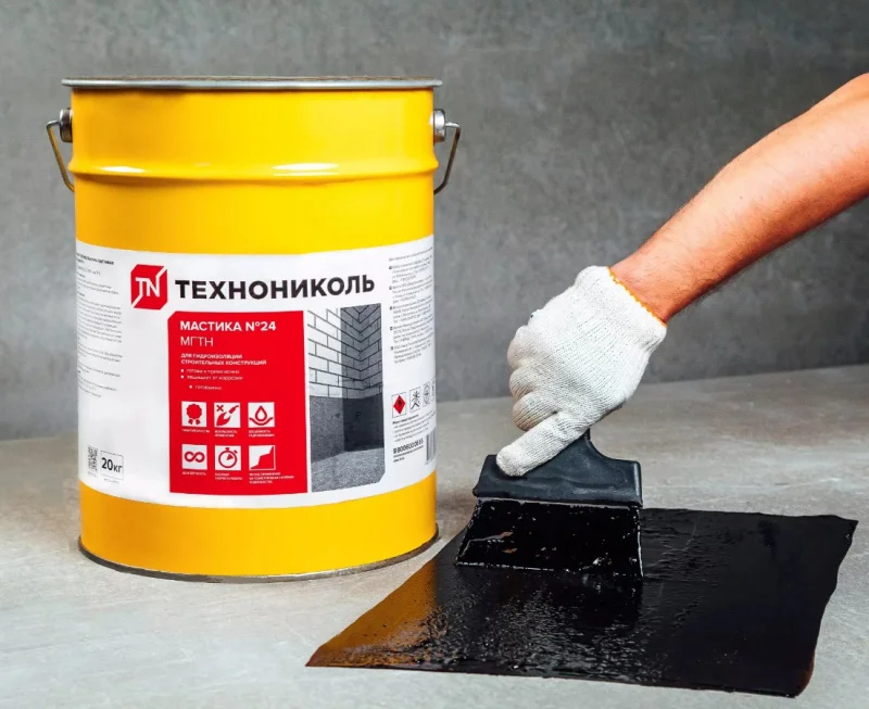 Мастика гидроизоляционная ТЕХНОНИКОЛЬ № 24 (МГТН) представляет собой полностью готовый к применению материал на основе нефтяного битума, содержащий технологические добавки, минеральные наполнители и растворитель.