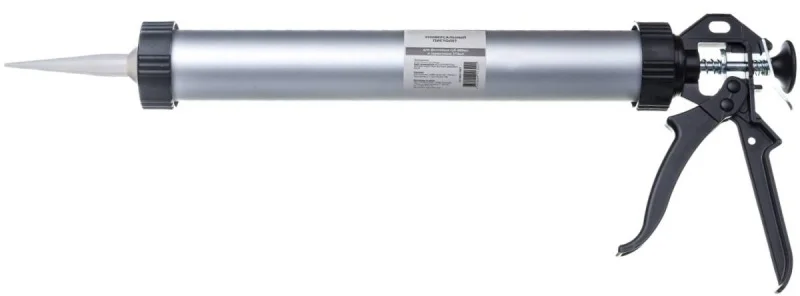 Пистолет закрытого типа из алюминия используется для выдавливания герметиков и клеев из картриджей или туб. Применяется для работы с материалами высокой вязкости, обеспечивая высокое передаточное соотношение. Эргономичная конструкция рукоятки и пускового рычага, а также легкий алюминиевый корпус делают его удобным для использования.