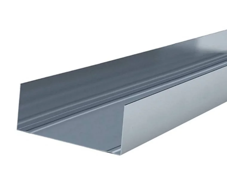 Направляющий профиль для гипсокартона используется для создания каркаса перегородок и облицовок, а также для установки перемычек между вертикальными стойками. Профиль могут быть легко закреплены к несущему основанию при помощи дюбелей.