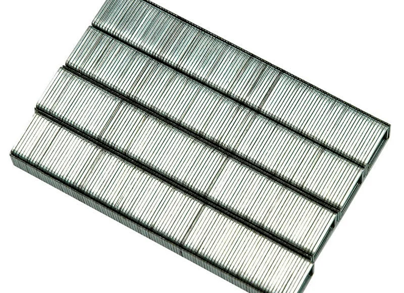 Прямоугольные скобы для степлера используются для соединения изделий из дерева, фанеры, картона, ДСП, оргалита и др., для обшивки мебели тканями посредством специальных скобозабивных пистолетов (степлеров). Скобы для мебельного степлера изготовлены из углеродистой стали. Закалены. Длина скоб: 10 мм. В упаковке 1000 шт. Тип 53. Ширина скобы – 11,3 мм, толщина – 0,7 мм.