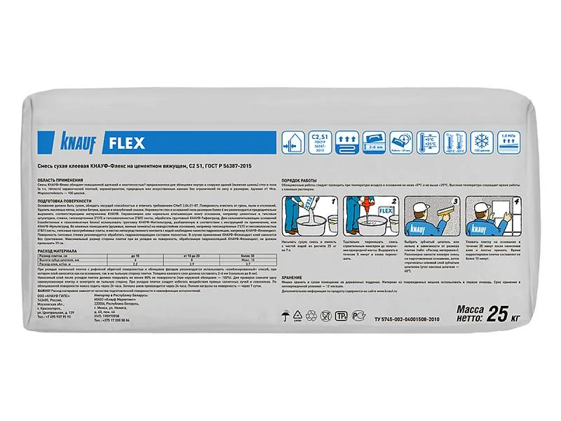 класс клеевой смеси (ГОСТ Р 56387-2015): С2; S1;