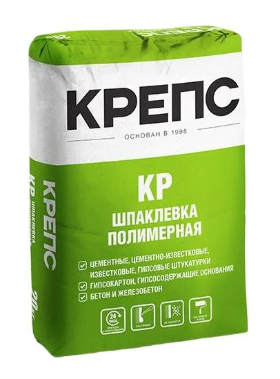 КРЕПС КР – сухая строительная шпаклевочная смесь на основе карбонатного наполнителя, модифицированная комплексом полимерных добавок. При смешивании с водой образует пластичную растворную смесь удобную в работе.